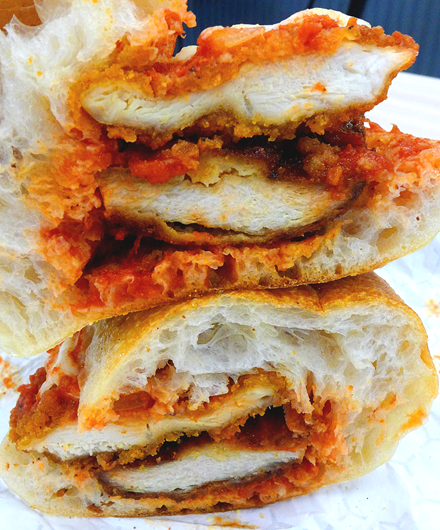 Long shelves of imported Italian food products for sale line the walls, as well as welcoming Italian words and phrases. Signature sandwiches from its impressive menu include Panino, Italian, Caprese and Copocollo, all made on large homemade ciabatta. Focaccia items feature Porchetta, Genovese, Romano, Napolitana, Toscana, and Caprese. The hot menu offers chicken parm, eggplant parm, meatball subs, chicken Portofino and homemade arancini. Additionally, Vincenzo’s offers pizza on its menu.